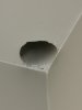 Er zit een ventilatie gat in het plafond van de keuken en in het plafond van de badkamer. De ventilatie schacht vanuit de keuken loopt middels een koof in de badkamer naar zolder. De ventilatie schacht van de badkamer loopt direct naar zolder. Ze komen op zolder bij elkaar uit en gaan dan naar buiten, twee afvoeren dus. Echter, de ventilatiegaten in het plafond zitten dusdanig ver tegen de muur aan dat ik hier geen ventilatieventiel in kan steken zonder een paar centimeter van het ventiel af te zagen. Op dit moment zijn het dus gewoon "open" verbindingen vanaf de keuken naar het dak en vanaf de badkamer naar het dak.