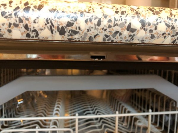 De stootplaat komt aan de bovenkant van de vaatwasser te zitten en zit dus precies tussen de binnen en buitenkant van de vaatwasser.