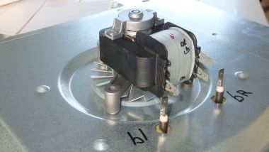 Bij het lostrekken van de bedrading schoot ik door, waardoor van de motorventilator (aan achterzijde oven bij het ronde verwamringselement) een draadje van de spoel is afgebroken. Zie bijgaande foto's.