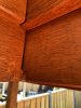 Deze zomer heb ik de de veranda schoon gemaakt en geolied. Daarbij viel mij op een aantal balken rondom de lichtstraat krom getrokken zijn. Sommige verbindingen wijken, waardoor er nog maar weinig oplegging is (zie foto). Dit doet mij vermoeden dat de verbindingen niet geschroeft/gebout zijn en dus 'koud' op/in elkaar liggen.