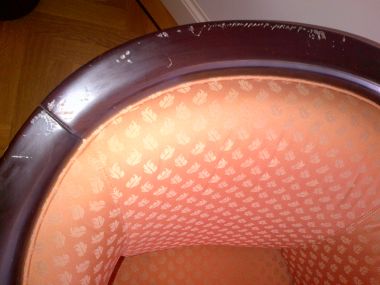 Heb twee fauteuils die beschadigd zijn (zie foto). Graag zou ik ze willen opknappen zodat ze nog prachtig jaren in mijn woonkamer kunnen staan. Weet echter niet hoe je zoiets aanpakt. Wellicht kunnen jullie mij helpen? Alvast bedankt.