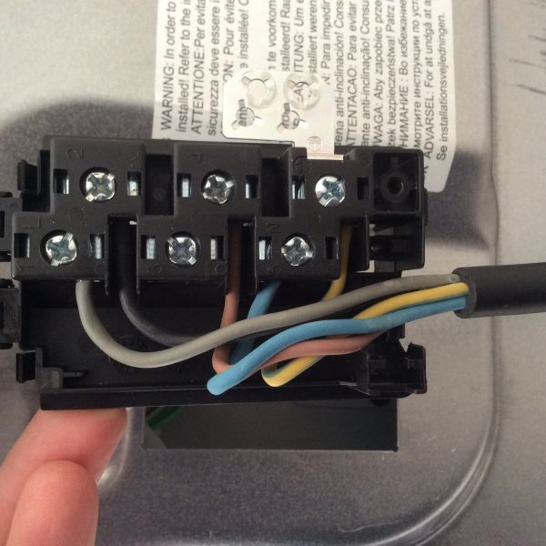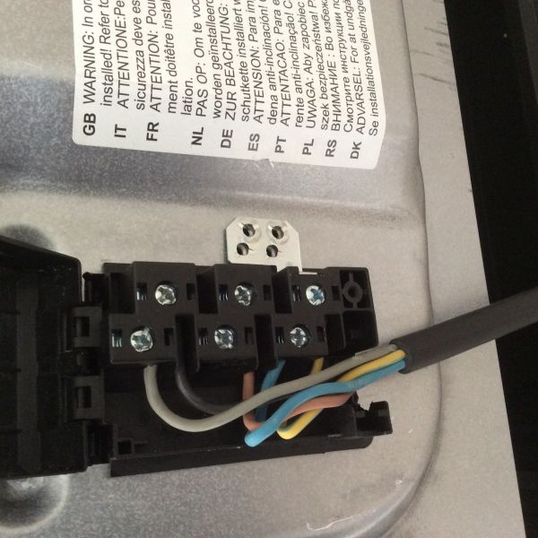 Ik heb de stopcontact open gemaakt links en rechtsbeneden zijn bruine kabels, links en rechtsboven zijn blauw en midden geelgroen. De stekker geeft aan dat linksboven L1 is linksbeneden L2 rechtsbeneden L3 rechtsboven een N en midden aarde.