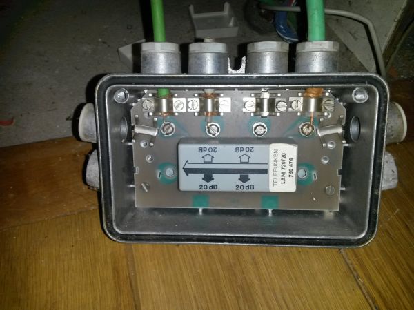 Het is een verzwakker/verdeler voor Coax. Bij een distributiesysteem voor kabelTV krijgt iedereen signaal, uit de middelste -20dB aansluitingen, en er kan met weinig verzwakking worden doorgelust van de rechter naar de linker aansluiting.