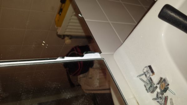 Nou is de spiegel zo gevallen dat er 1 van de 3 spiegels een stukje van afgebroken is.
