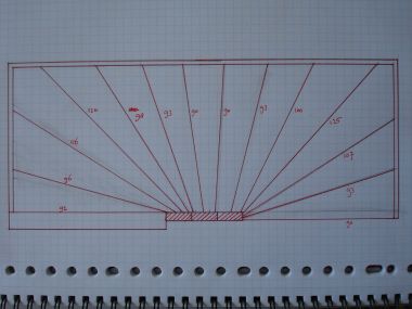 Voordat ik mijn trap ga aflakken wil ik er alvast de groeven voor de anti-slip strips in frezen. Nu zit ik een beetje te puzzelen met o.a. de verdeling van de strips over de treeplank (wat ziet er het mooiste uit en is het meest effectief) en over het beperken van snijverlies.