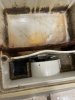 Uit de doucheput komt een vieze geur. Loodgieter gaf aan dat de afsluiting mist. Mijn huisbaas wil het putje niet vervangen aangezien de vloer open gebroken moet worden. Het verroestte plaatje wat in het midden zit, hoort volgens de loodgieter niet eens in het putje te zitten. Ik vermoed dat dit een eigen bedachte installatie is geweest.