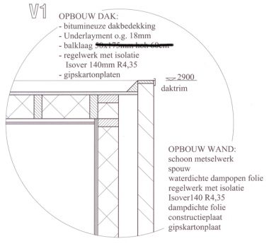 Beide daken lopen af na de afwatering toe met ongeveer 1 cm per meter.